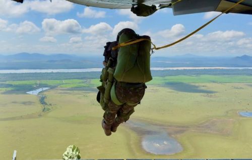 No âmbito aeroterrestre, a Força-Tarefa Afonsos executou infiltração por meio de saltos táticos a partir de 1.000 pés de altitude com paraquedas RZ-21, empregando técnicas de assalto aeroterrestre visando à conquista de posições no terreno planejado.